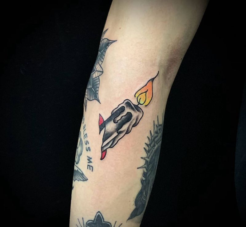 当前位置: 首页 >广东省广州市纹身店-框刺青纹身图案>蜡烛纹身图片_手臂Old School纹身图案