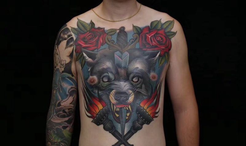 当前位置: 首页 >广东省广州市纹身店-灵艺刺道纹身馆纹身图案>oldschool胸花纹身图片