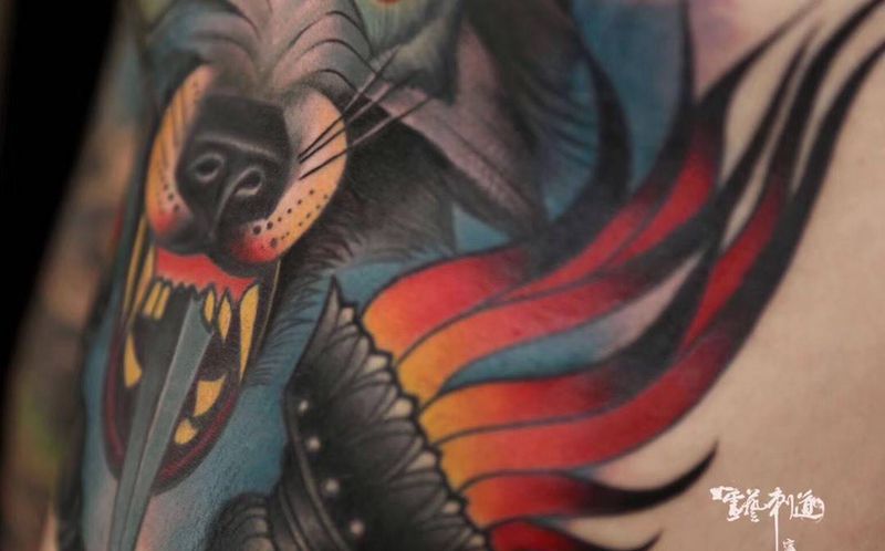 • 纹身吧推荐的披肩图腾半胛纹身图案作品展示