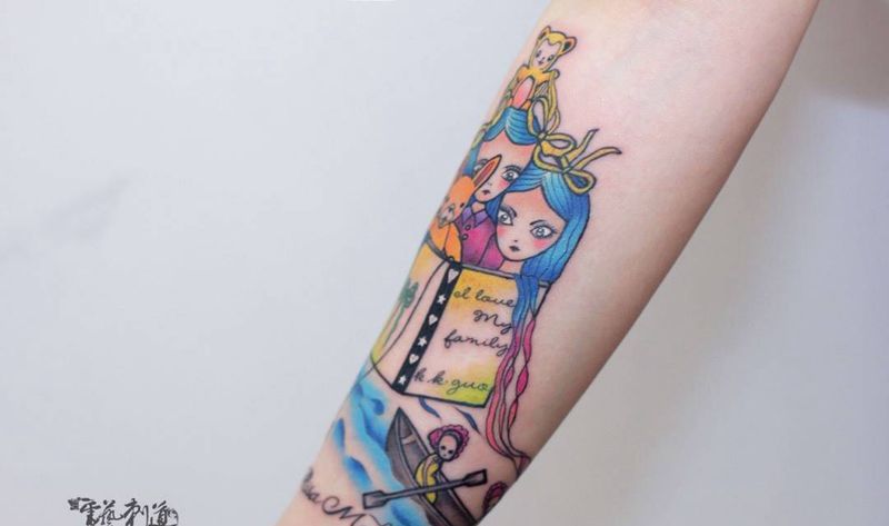 • T家庭图,一家四口生日纪念!纹身图片_手臂纹身图案