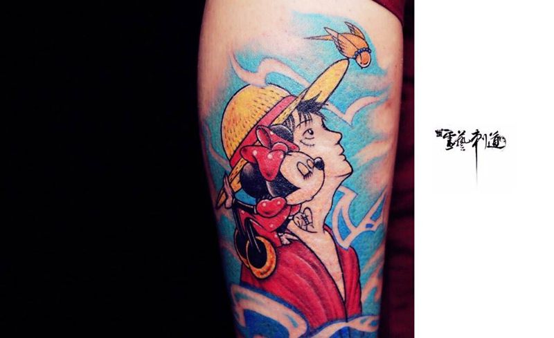 • T包小腿吹火男+阿多福纹身图片_腿部老传统新传统吹火男阿