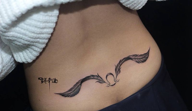 羽毛星座纹身图片_腰部成品手稿清新写实静物原创纹身图案