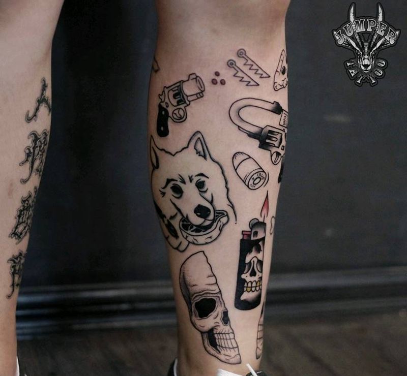 当前位置: 首页 >广东省广州市纹身店-IN TATTOO纹身图案>oldschool包腿纹身图片_脚部欧美几何字符动物人物原创成品纹身图案