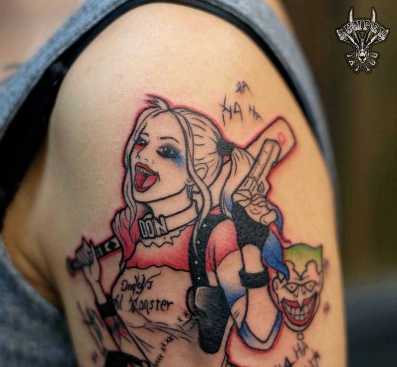 小丑女哈利奎恩纹身图片_手臂欧美字符人物原创成品纹身图案