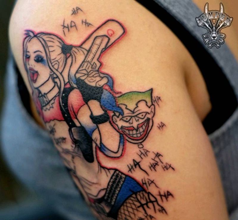 小丑女哈利奎恩纹身图片_手臂欧美字符人物原创成品纹身图案