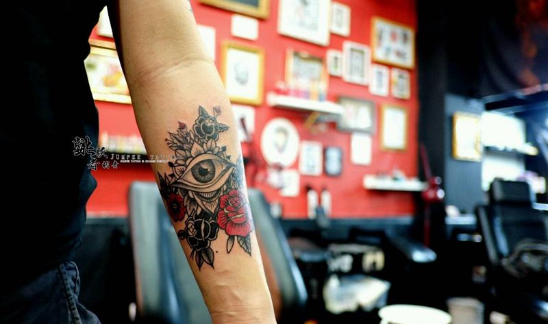 当前位置: 首页 >广东省广州市纹身店-IN TATTOO纹身图案>old school 眼睛纹身图片_手臂欧美植物原创成品手稿插画纹身图案