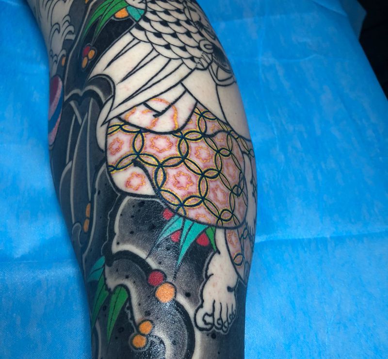 • T网红王老大花腿龙纹身图片_腿部新传统纹身图案