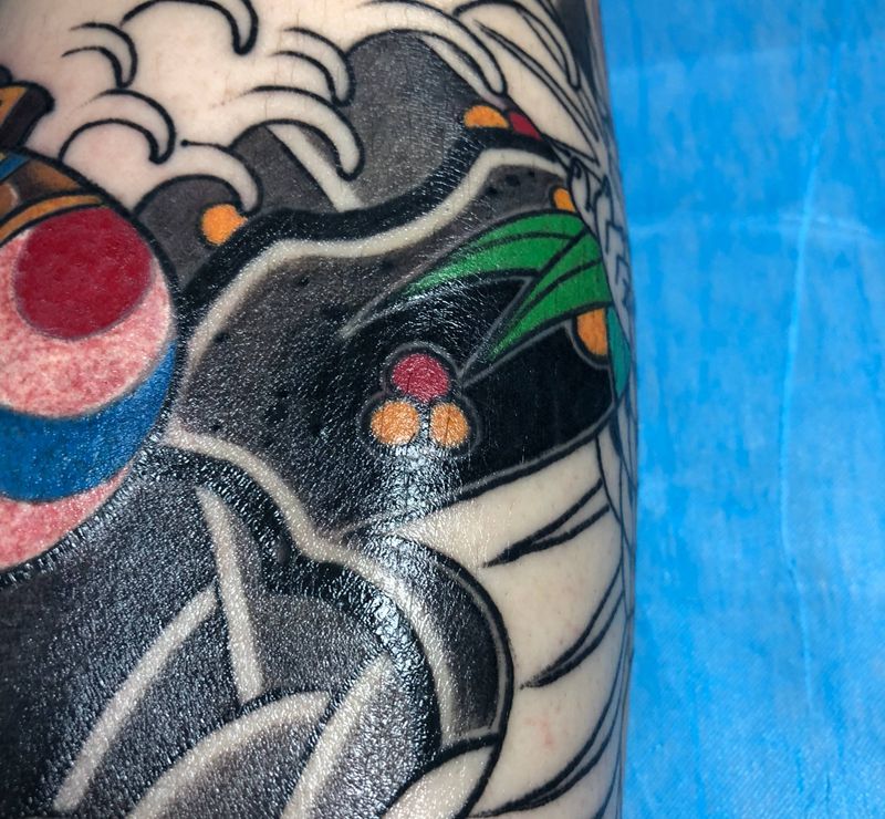 • T网红王老大花腿龙纹身图片_腿部新传统纹身图案