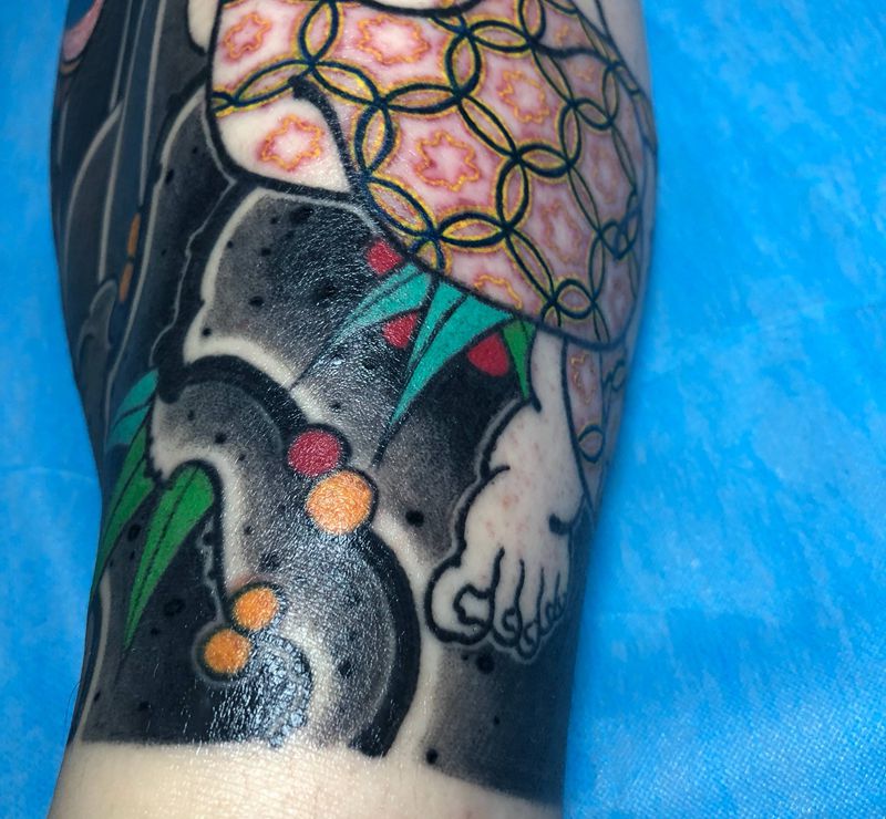 • T网红王老大花腿龙纹身图片_腿部新传统纹身图案