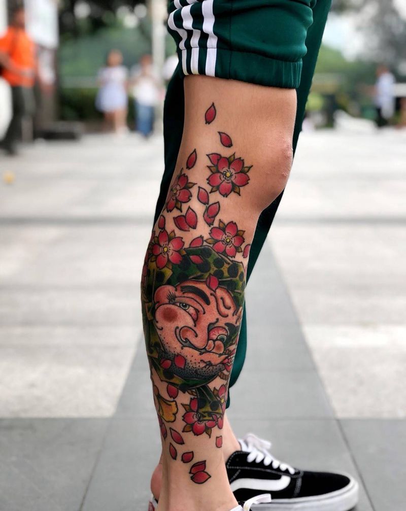• T网红王老大花腿龙纹身图片_腿部新传统纹身图案