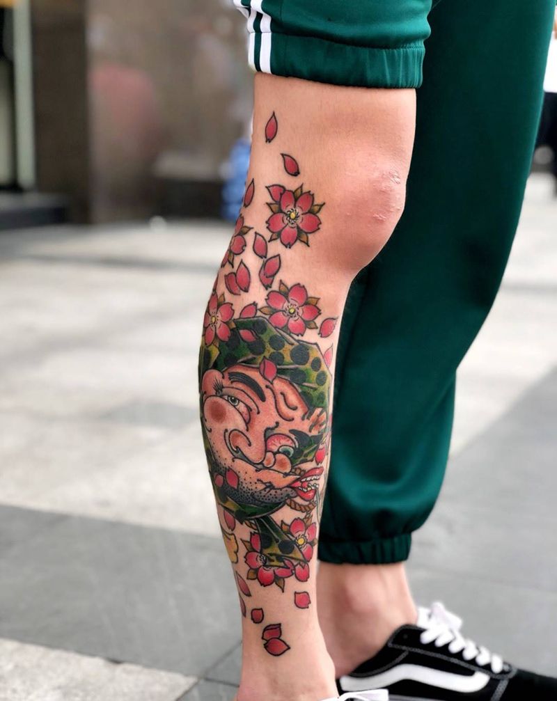 • T网红王老大花腿龙纹身图片_腿部新传统纹身图案