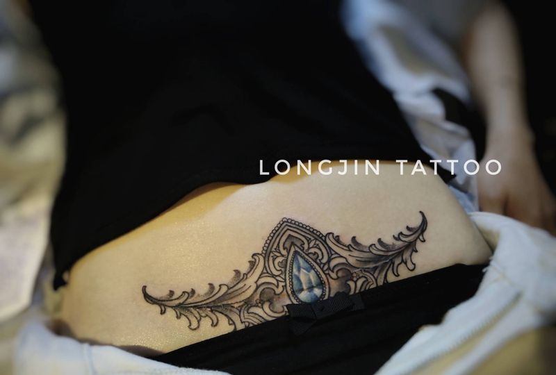 • 时尚性感的腹部莲花纹身图案
