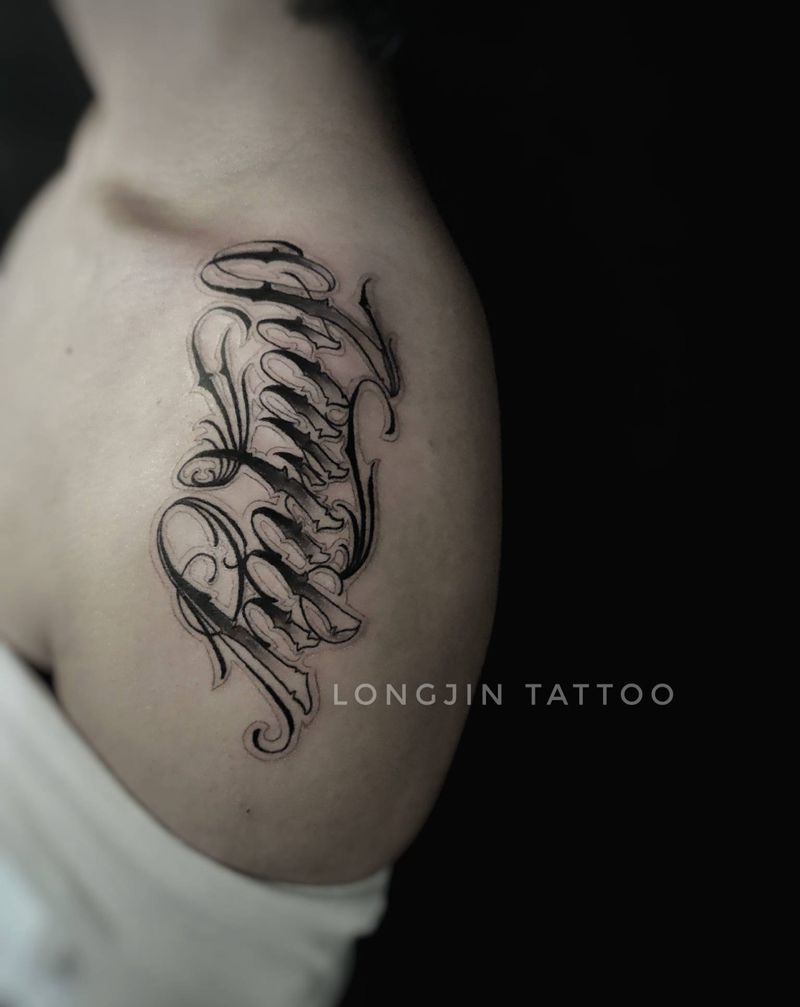 • 纹身吧推荐的披肩图腾半胛纹身图案作品展示
