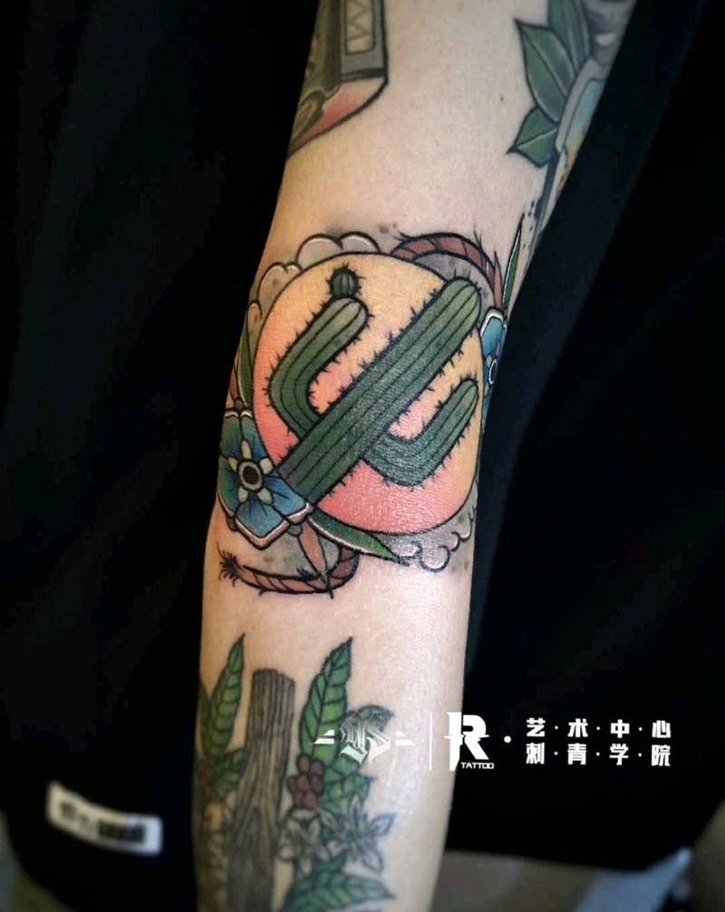 当前位置: 首页 >广东省广州市纹身店-贰柒刺青纹身图案>new school拼接纹身图片_手臂New School仙人掌猫咖啡纹身图案