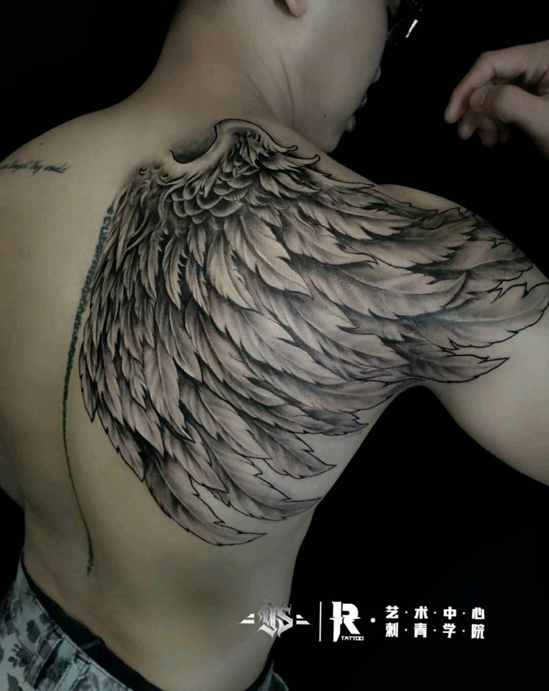 单飞纹身图片_背部肩部欧美写实翅膀天使纹身图案