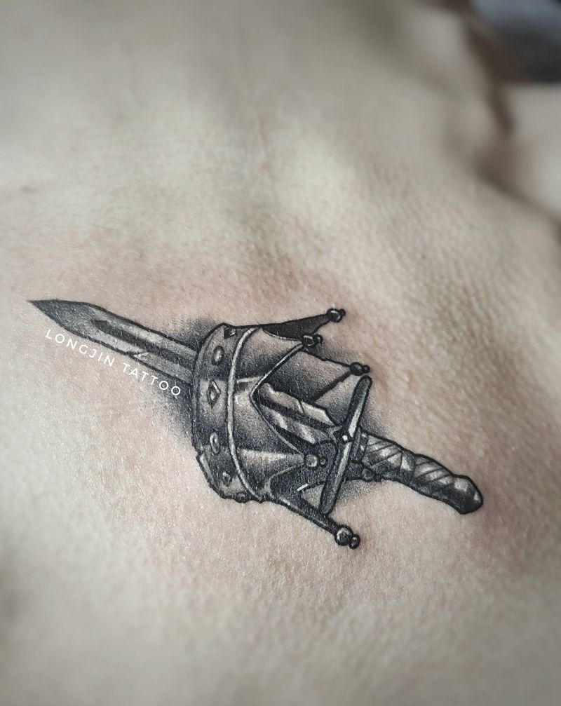 皇冠,小而精纹身图片_胸部欧美写实皇冠匕首纹身图案