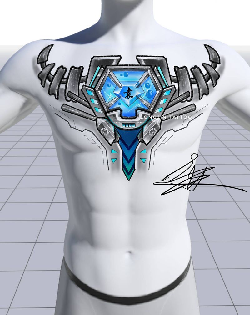 赛博朋克机械手稿纹身图片_胸部手部欧美写实机械赛博朋克纹身图案