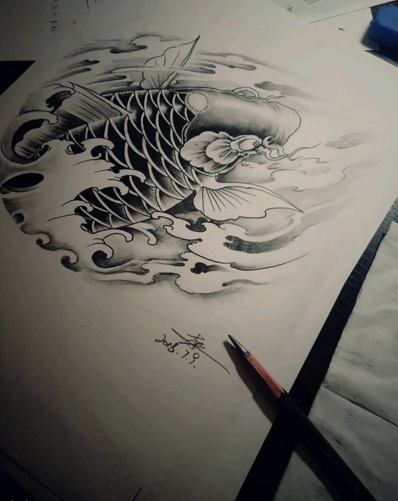 当前位置: 首页 >广东省广州市纹身店-贰柒刺青纹身图案>鲤鱼~纹身图片_胸部传统动物原创成品纹身图案