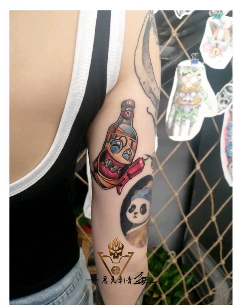 爱小辣椒的酒瓶……纹身图片_手部欧美写实New School纹身图案