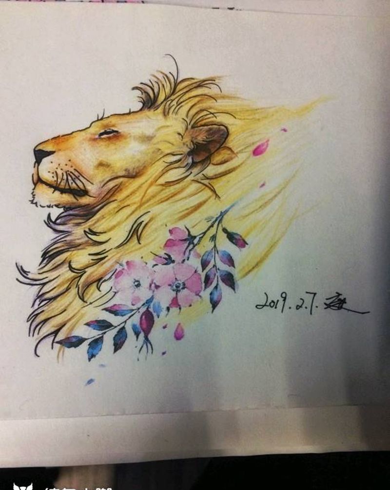 当前位置: 首页 >广东省广州市纹身店-贰柒刺青纹身图案>狮子座纹身图片_胸部水彩水墨纹身图案