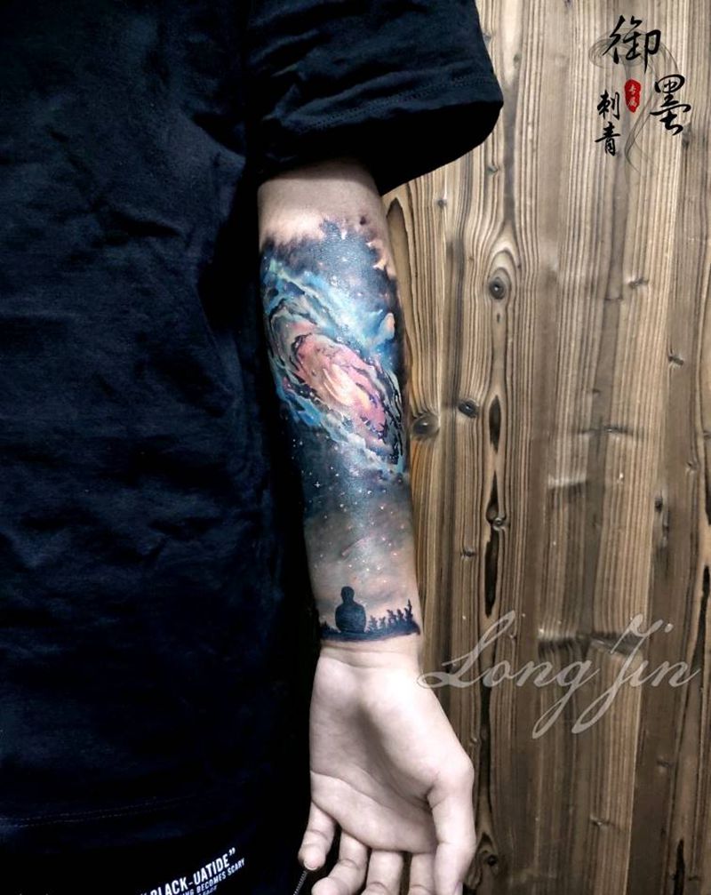 星空遮盖纹身图片_手臂手部欧美写实水彩星空遮盖纹身图案