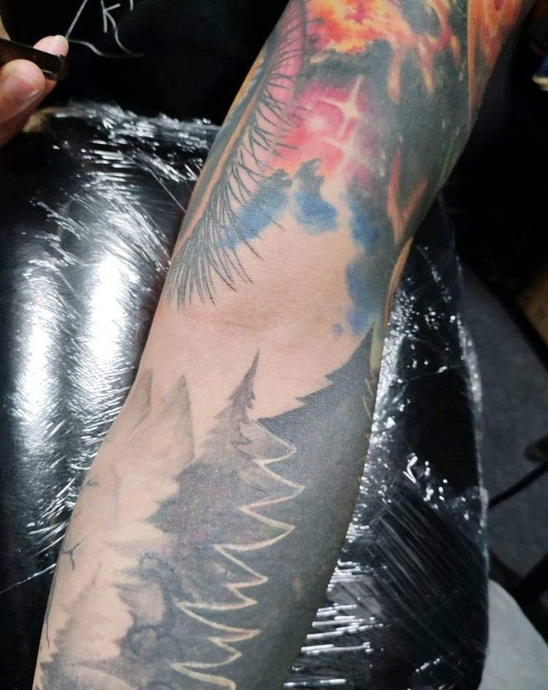 填空题纹身图片_手臂水彩星空彩色健身纹身图案