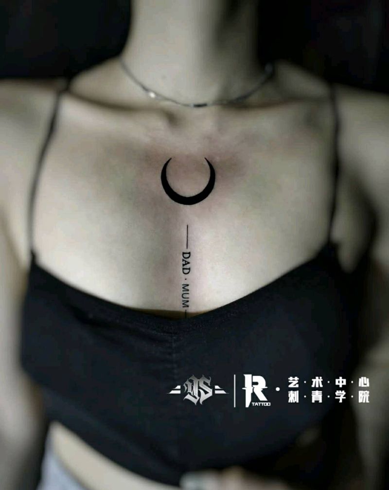 没毛病的锁骨纹身图片_胸部几何小清新月亮纹身图案