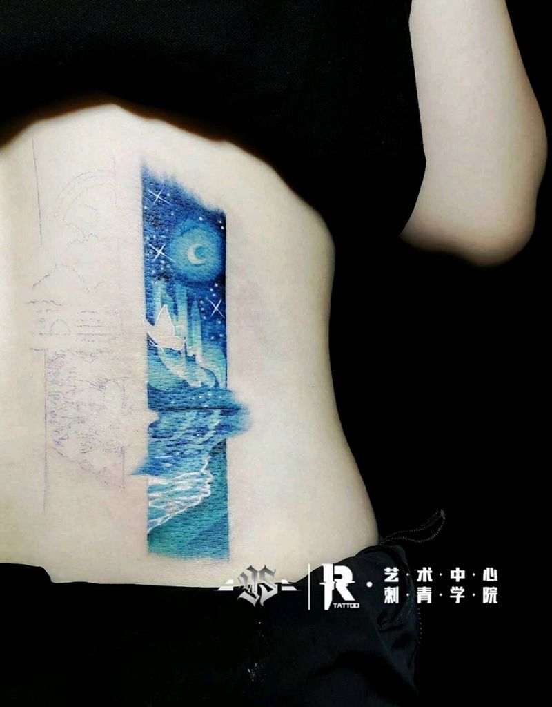 星辰,还有另一半未完成纹身图片_腰部水彩星空水彩纹身图案