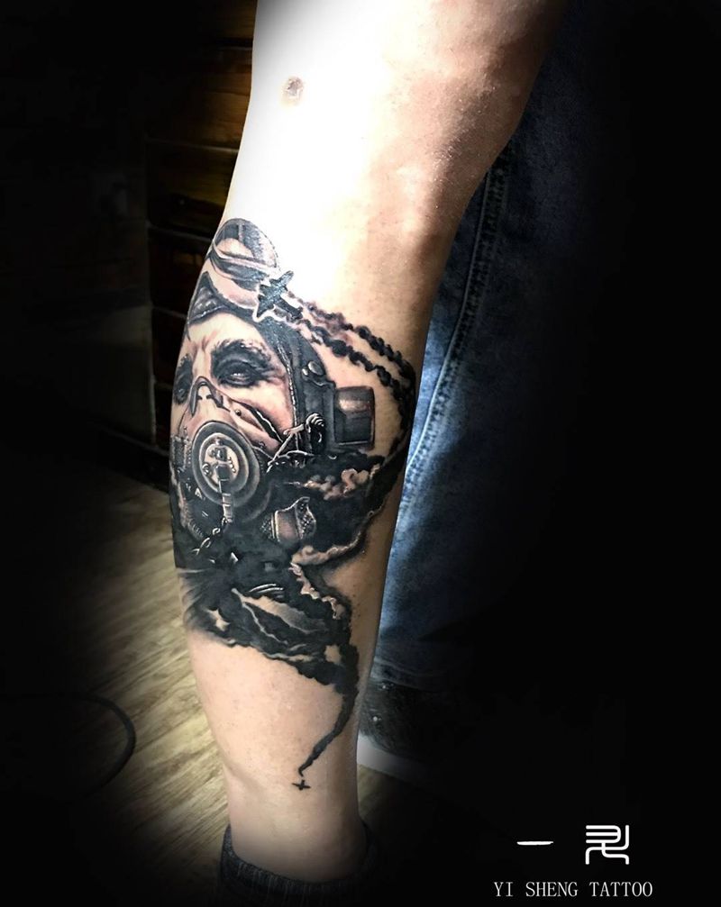 二战花腿纹身图片_腿部欧美写实纹身图案