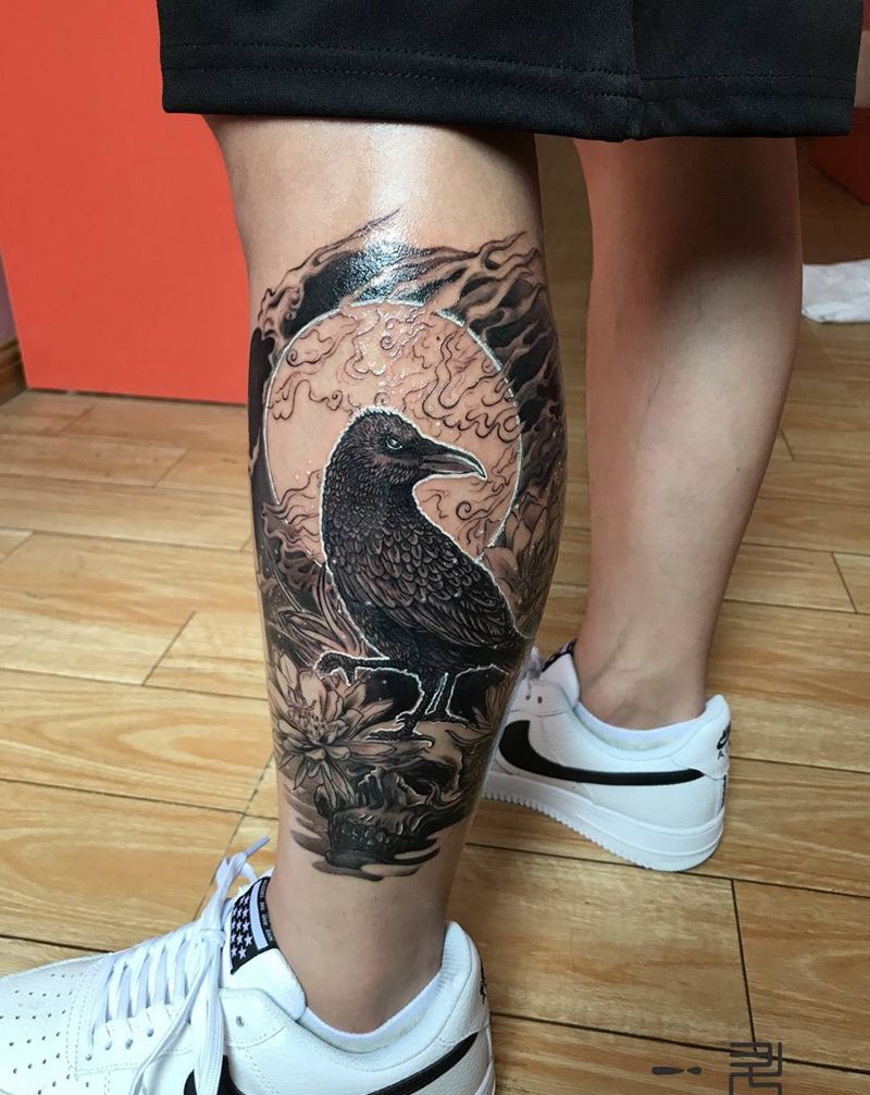 当前位置: 首页 >广东省广州市纹身店-古塔刺青纹身图案>三足金乌纹身图片_腿部新传统纹身图案