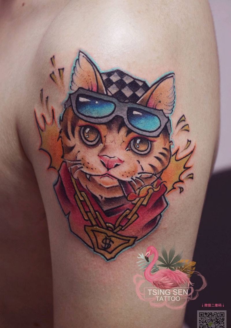嘻哈社会喵纹身图片_手臂New School纹身图案