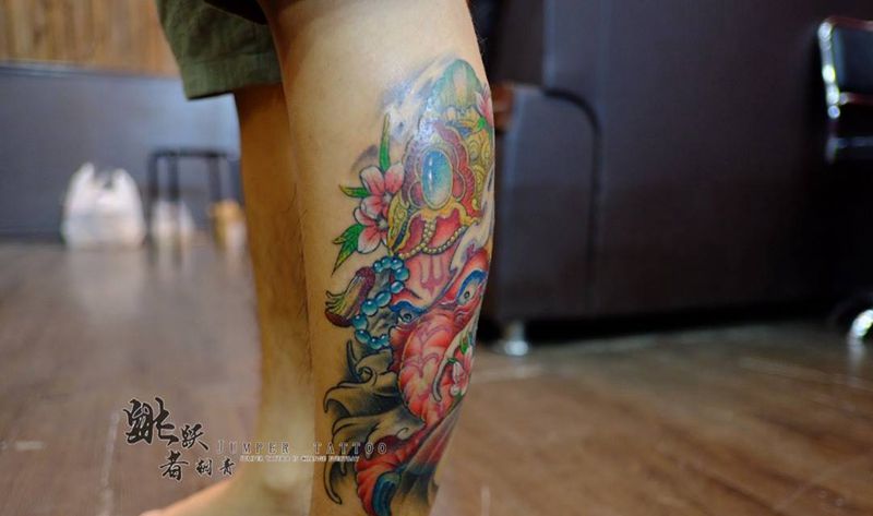 • T网红王老大花腿龙纹身图片_腿部新传统纹身图案