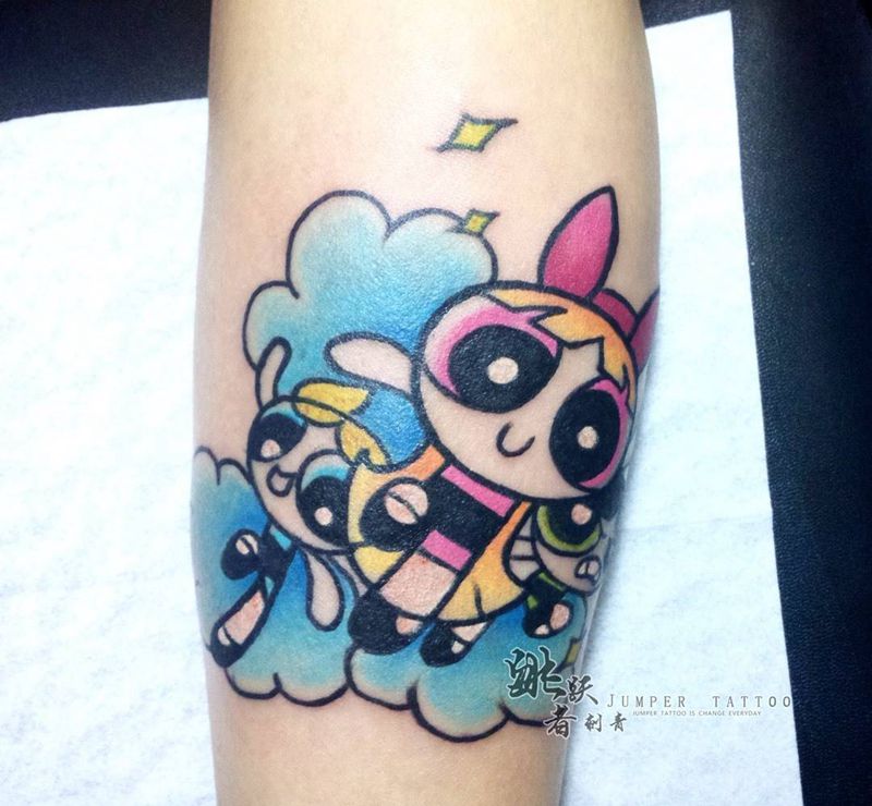 飞天小女警纹身图片_卡通成品手臂手部清新原创人物纹身图案