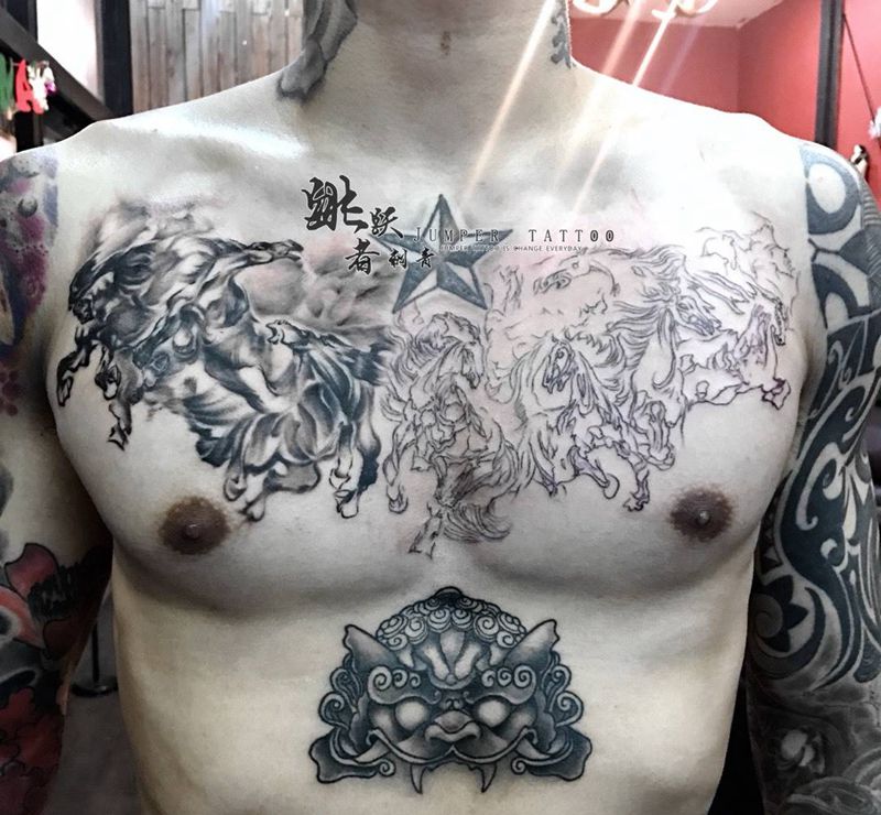 当前位置: 首页 >广东省广州市纹身店-鹿原刺青纹身图案>八骏图未完成纹身图片