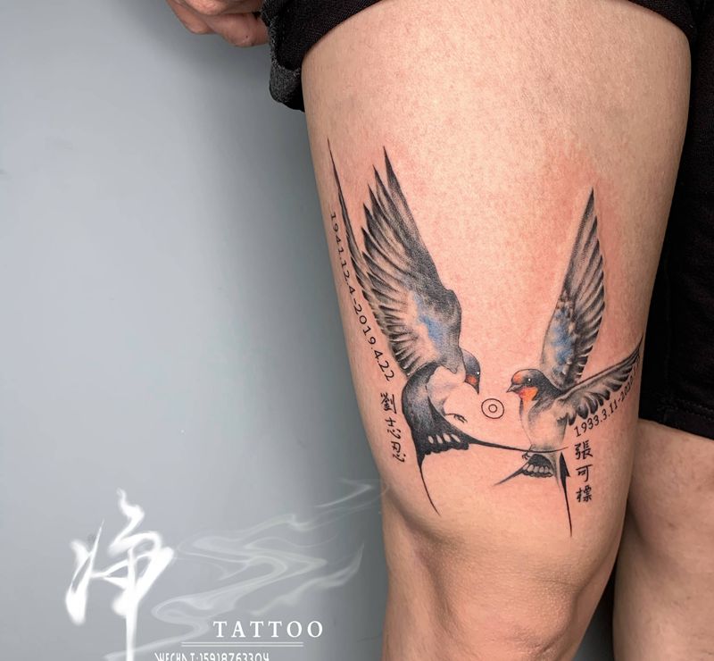 当前位置: 首页 >广东省广州市纹身店-净刺青纹身图案>燕子纹身图片_腿部水彩水墨燕子纹身图案