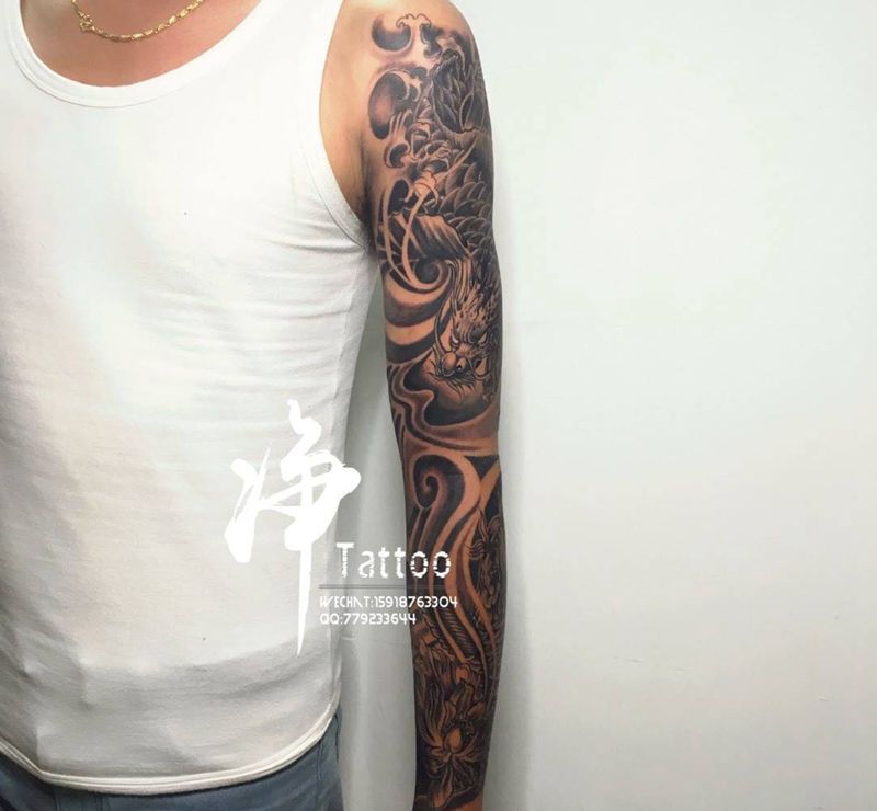 当前位置: 首页 >广东省广州市纹身店-净刺青纹身图案>龙鱼花臂纹身图片