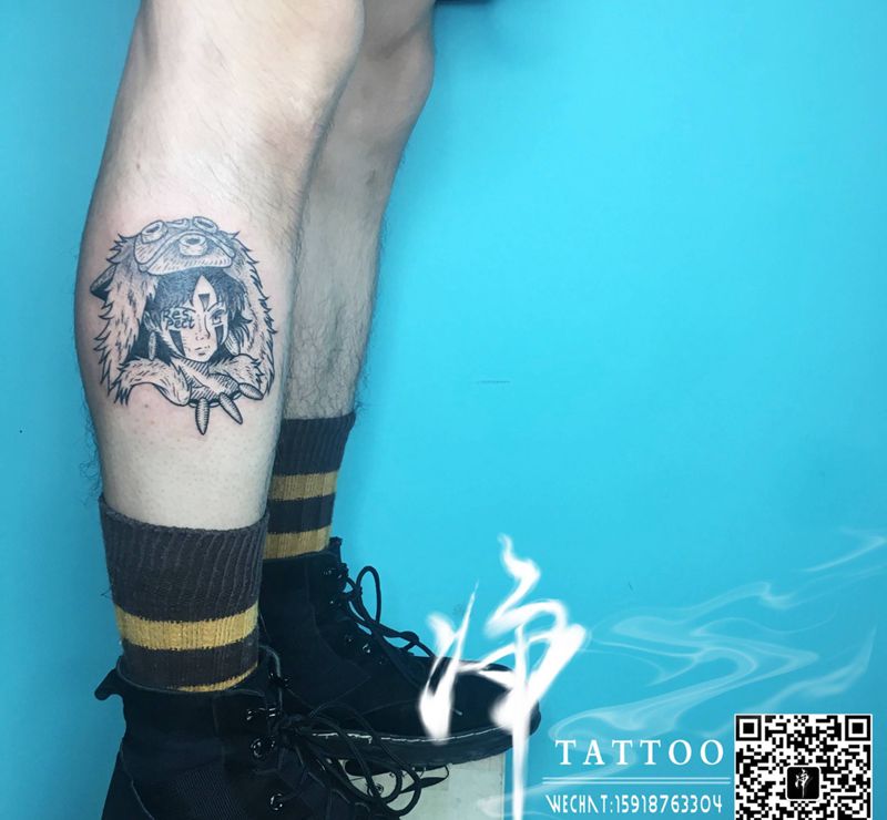 幽灵公主纹身图片_成品脚部欧美肖像写实贴纸人物鬼神宗教情侣纹身图案