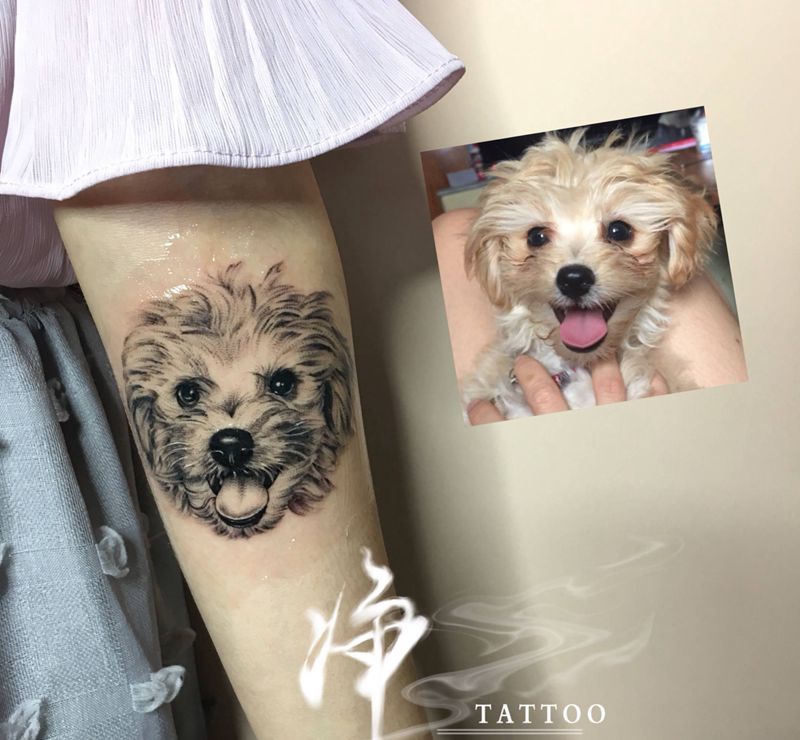 当前位置: 首页 >广东省广州市纹身店-净刺青纹身图案>狗狗纹身图片_手臂手部欧美写实新传统狗宠物写实纹身图案