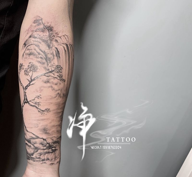 当前位置: 首页 >广东省广州市纹身店-净刺青纹身图案>中国山水画纹身图片_手部水墨纹身图案