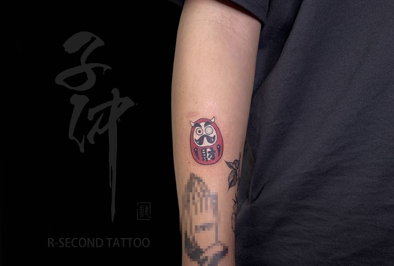 当前位置: 首页 >广东省广州市纹身店-子仲刺青纹身图案>【达摩蛋】纹身图片_手臂手部New School达摩达摩蛋日式卡通纹身图案