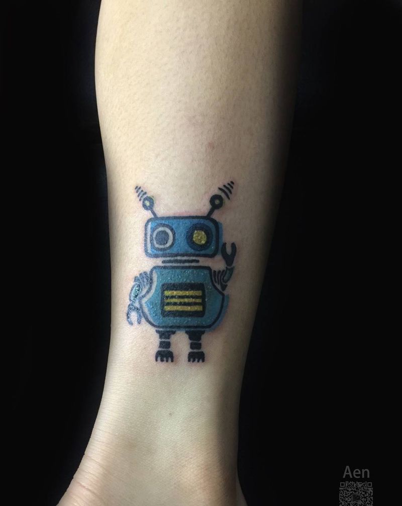 当前位置: 首页 >广东省广州市纹身店-子仲刺青纹身图案>机器人纹身图片_腿部New School机器人纹身图案