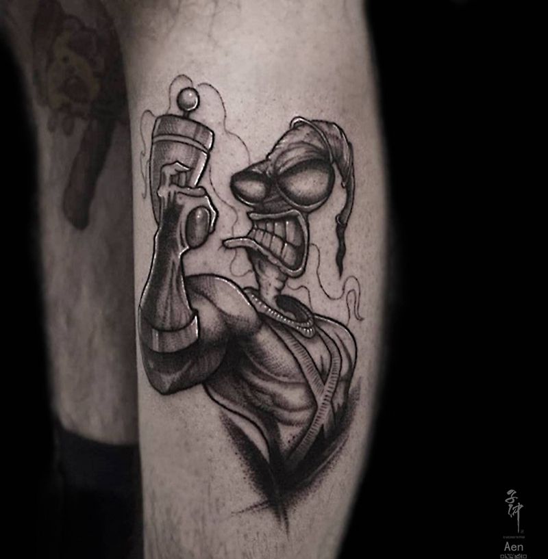• T包小腿吹火男+阿多福纹身图片_腿部老传统新传统吹火男阿