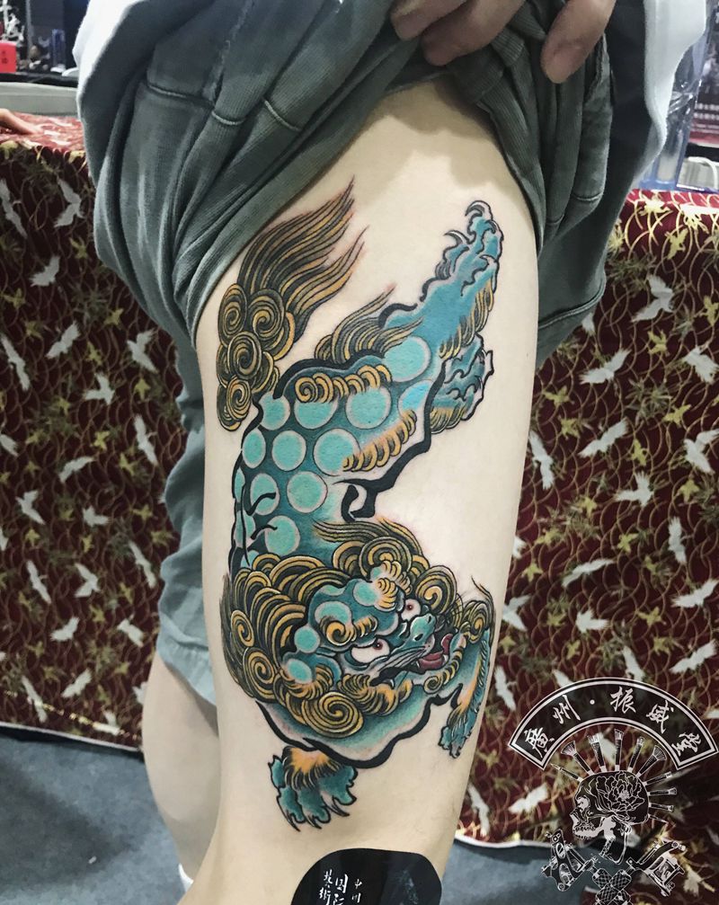 当前位置: 首页 >广东省广州市纹身店-振威堂纹身社纹身图案>唐狮子纹身图片_脚部腿部老传统纹身图案