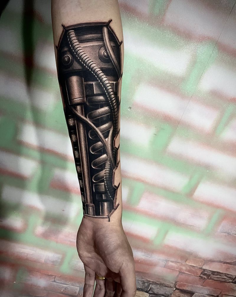 当前位置: 首页 >广东省广州市纹身店-彬刺青纹身图案>机械臂纹身图片_手臂手部欧美写实机械纹身图案