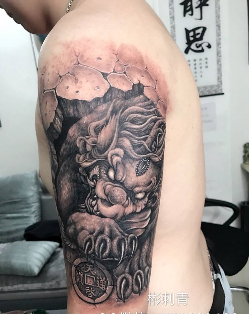 当前位置: 首页 >广东省广州市纹身店-彬刺青纹身图案>石裂貔貅 完成纹身图片