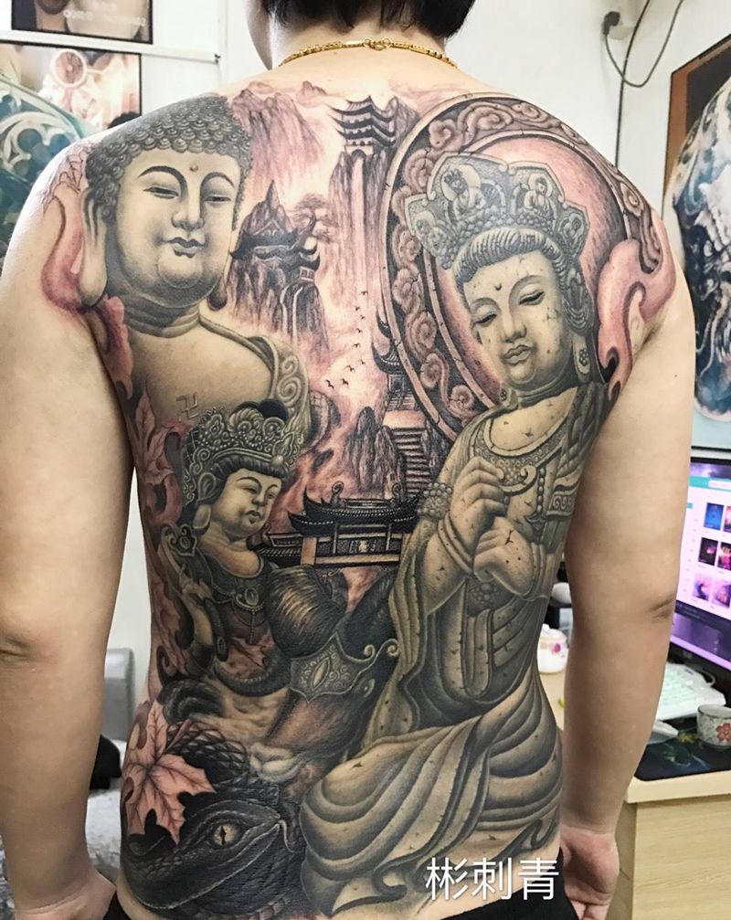 当前位置: 首页 >广东省广州市纹身店-彬刺青纹身图案>家庭生肖佛系列满背完成纹身图片