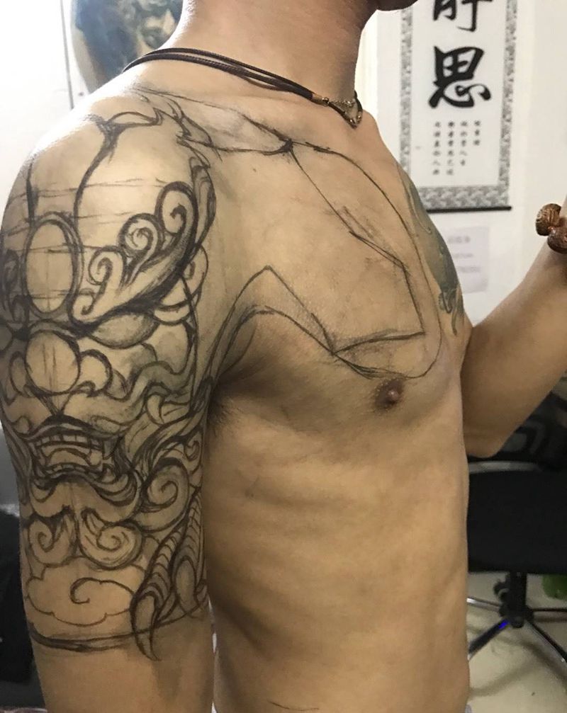 • 纹身吧推荐的披肩图腾半胛纹身图案作品展示