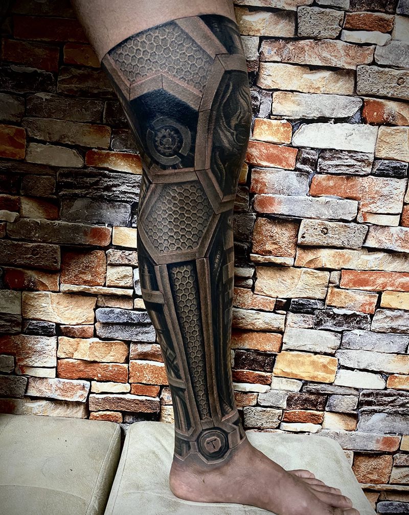 【机械腿-骷髅之魂】纹身图片_脚部腿部欧美写实机械机械腿纹身图案