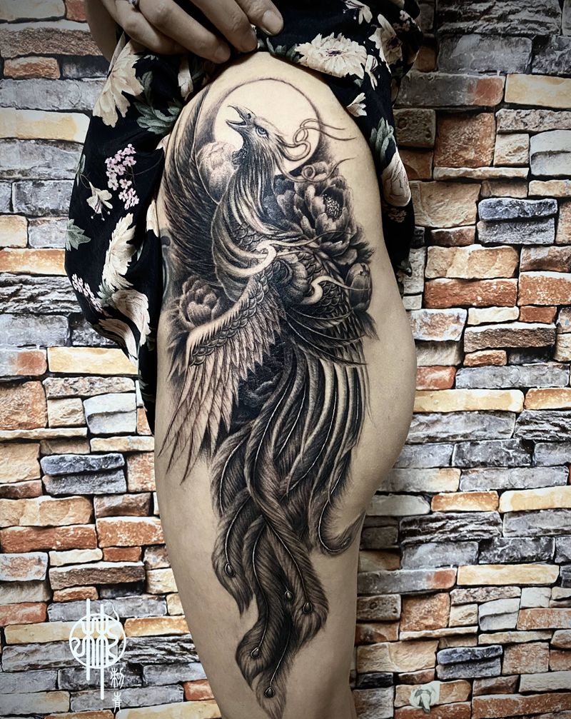 当前位置: 首页 >广东省广州市纹身店-彬刺青纹身图案>百鸟之王-凤凰纹身图片_腰部腿部欧美写实纹身图案