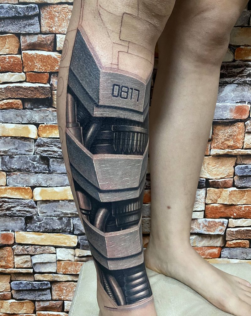 当前位置: 首页 >广东省广州市纹身店-彬刺青纹身图案>机械腿-未完成纹身图片_脚部腿部欧美写实机械机械腿纹身图案